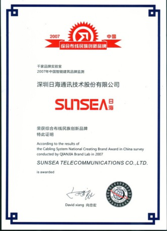 2007年11月29日~30日,NG娱乐公司智能综合布线受邀前往上海光大会展中心酒店,参加由千家网筹办的“2007年第八届中国国际建筑智能化峰会暨颁奖典礼”,获得了“布线民族创新品牌”特别奖项。